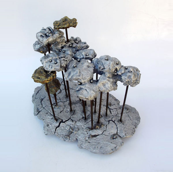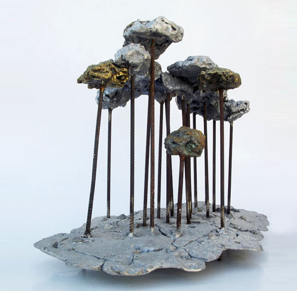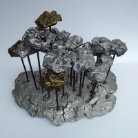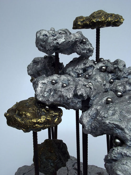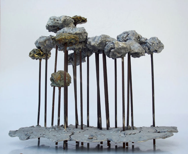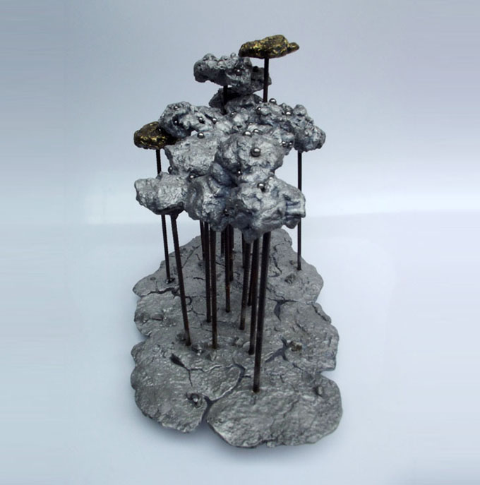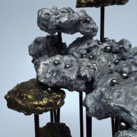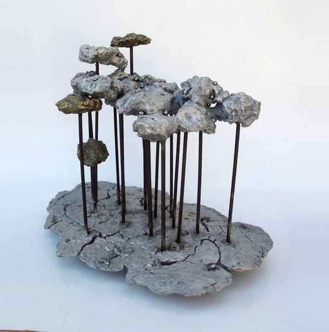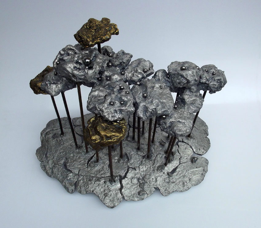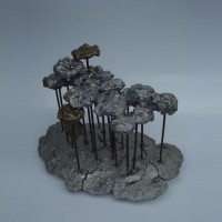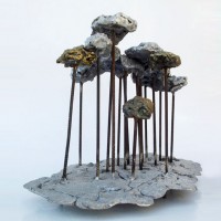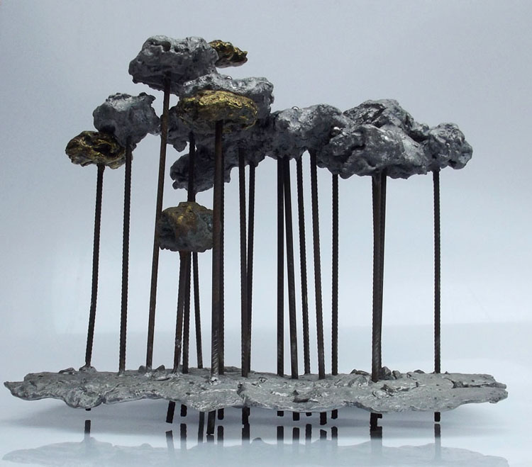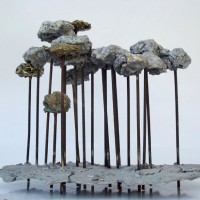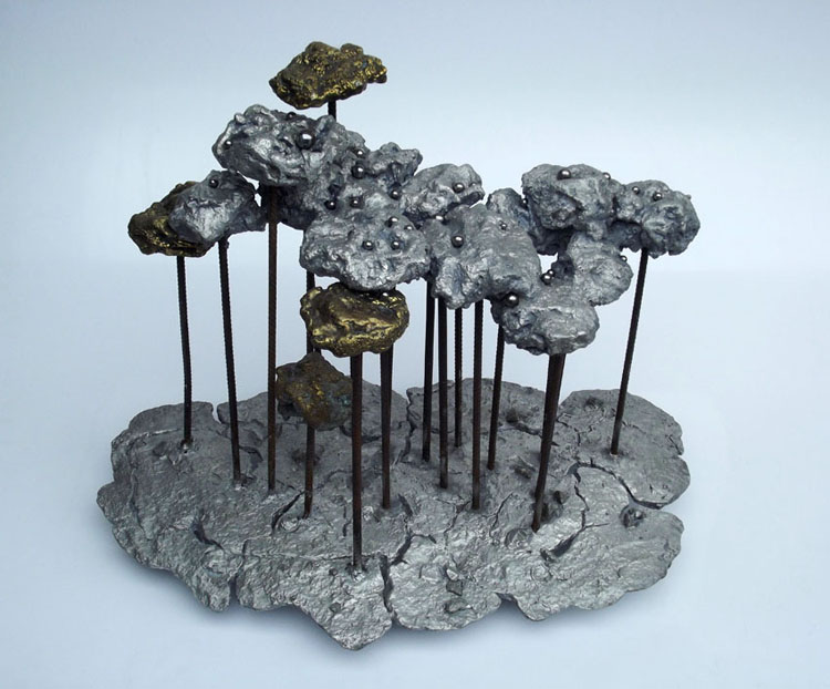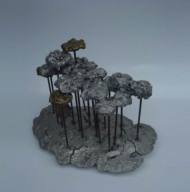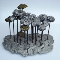 Descrição: Floresta de araucárias, fundição mista de bronze e alumínio, hastes de vergalhão de ferro, com aplicação de esferas de aço.