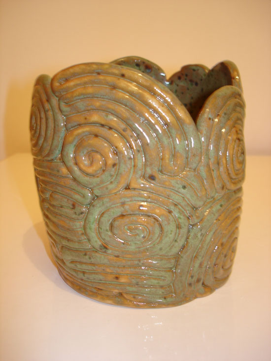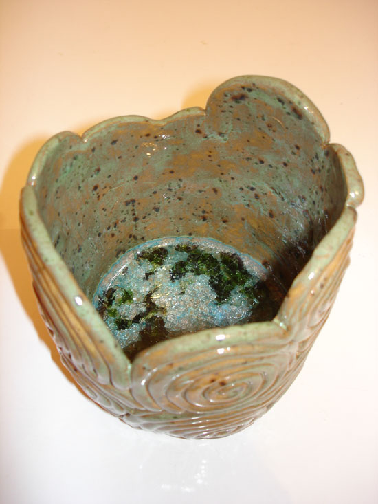Acordelado Verde Vitral Descrição da Obra Dimensões da peça: Altura: 20 cm Diâmetro: 15 cm Técnica: Cerâmica/acordelado – Queima biscuit e glasura com vidro no interior Ano: 2006 Obra Única Peça assinada Acervo da Artista Facebook Twitter Google+ Pinterest LinkedIn