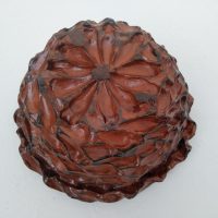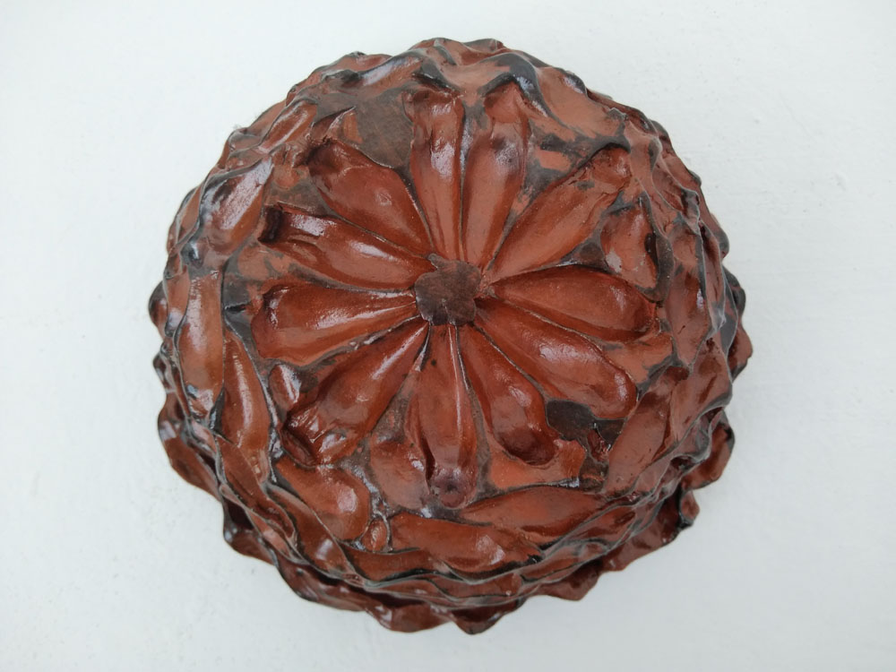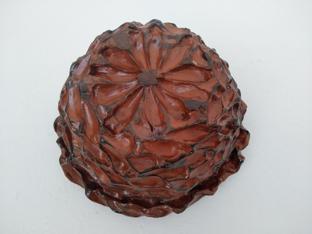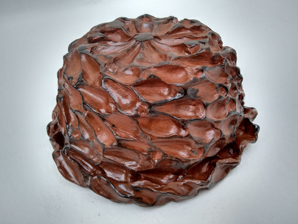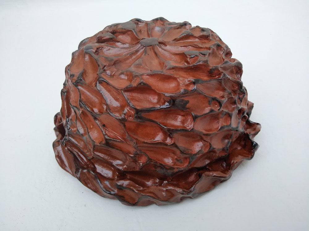 Pinha de Araucária Descrição da Obra Dimensões da peça: Altura: 11 cm Diâmetro: 23 cm Técnica: Cerâmica – Queima biscuit e glasura Ano: 2006 Obra Única Peça assinada À venda Facebook Twitter Google+ Pinterest LinkedIn