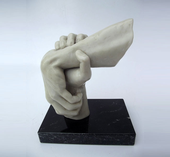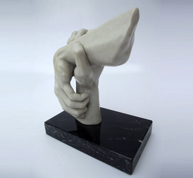 Descrição: Escultura de resina maciça, fixada em base de granito