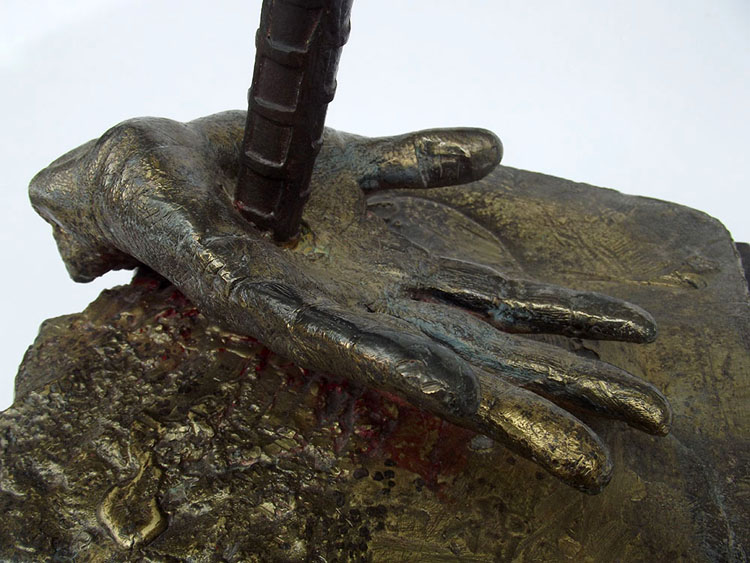 Pátina quente em tons castanhos com detalhes em pátina fria vermelha