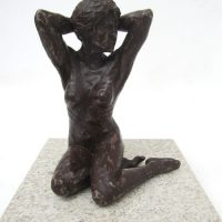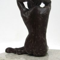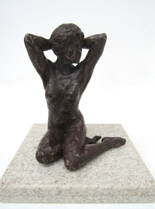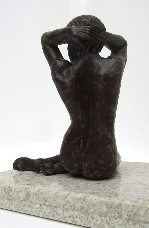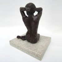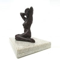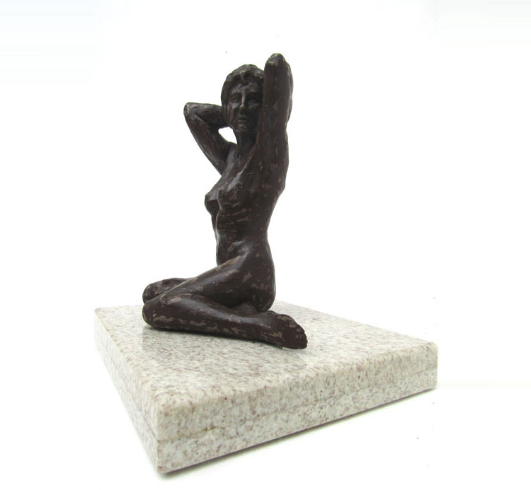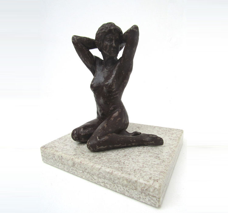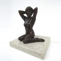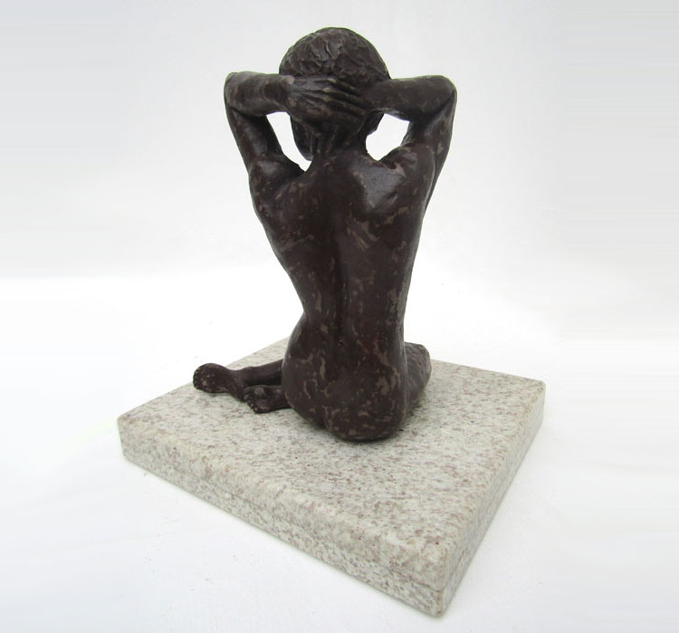 Escultura de resina (mármore sintético), nú feminino. Obra não fixada, apoiada sobre base de granito.