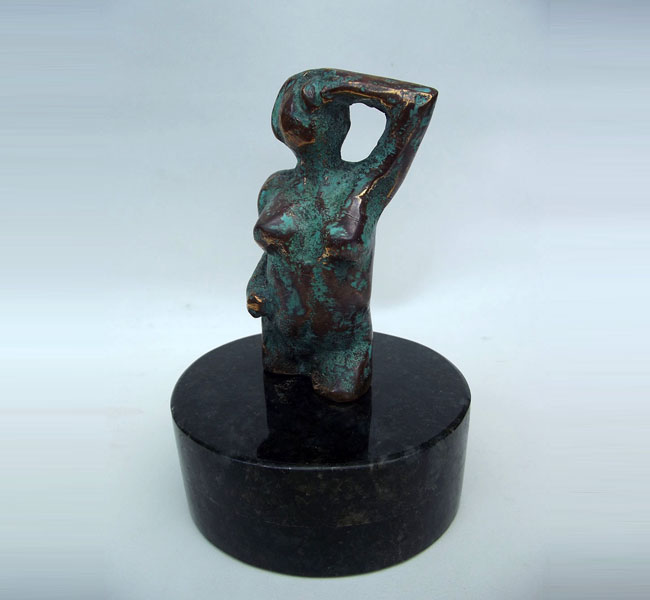 Descrição: Escultura de bronze, nú feminino, sobre base de granito (peça não fixada).