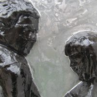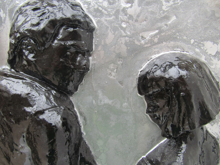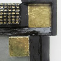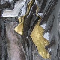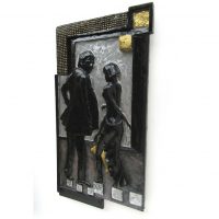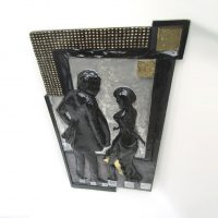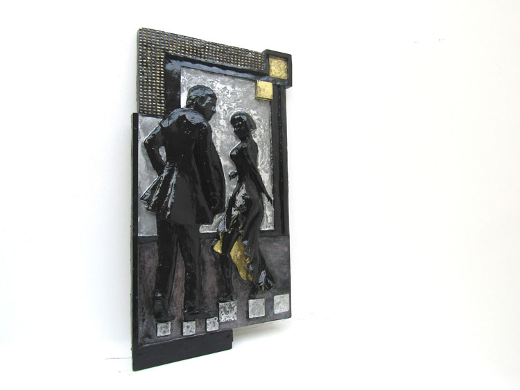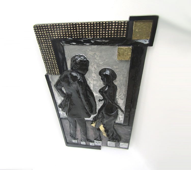 Pintura acrílica sobre suporte tridimensional modelado e moldado por laminação em resina e fibra de vidro.