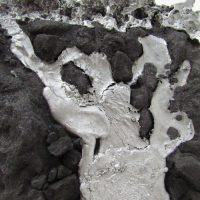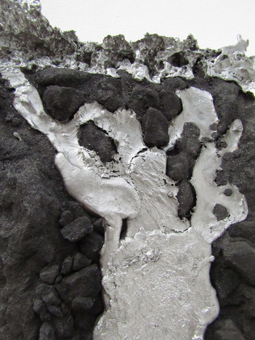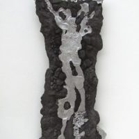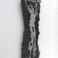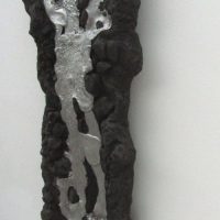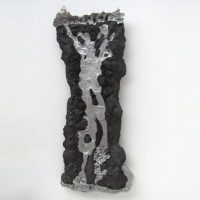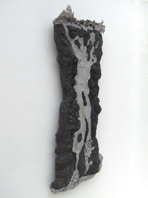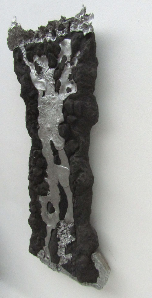 Escultura de parede. Estrutura em resina com fibra de vidro recoberta com pó e pedra de grafite de carbono e alumínio fundido.