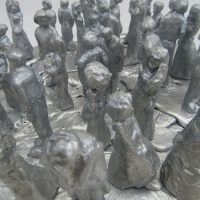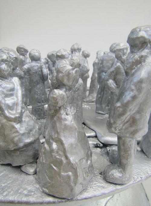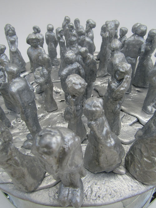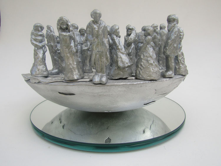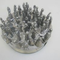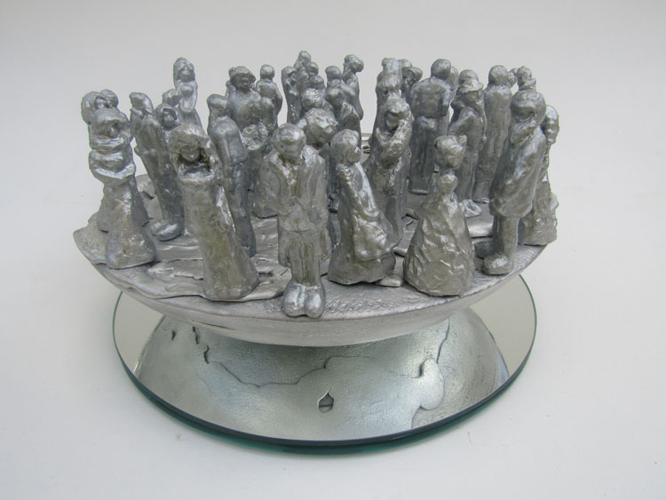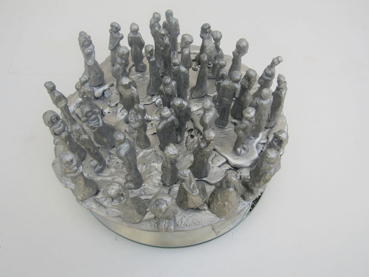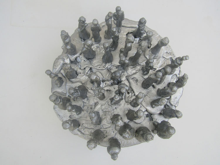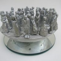 Obra não fixada, repousando sobre o espelho, apenas em equilíbrio, rodando suavemente sobre seu eixo ao simples toque. As pequenas figuras são exclusivas, modeladas uma a uma e estão em equilíbrio sobre o topo da esfera. Como as figuras estão soltas, ficam propensas a queda pela movimentação da base, o que acarreta permanente rearranjo do tabuleiro.