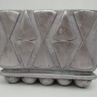 Fruteira Paranista Descrição da Obra Fruteira com motivos geométricos. Técnica: Fundição em alumínio Ano: 2016 Obra única Peça assinada Dimensões da peça Altura: 20 cm Largura: 27 cm Profundidade: 27 cm Peso: 10 Kg À venda Facebook Twitter Google+ Pinterest LinkedIn