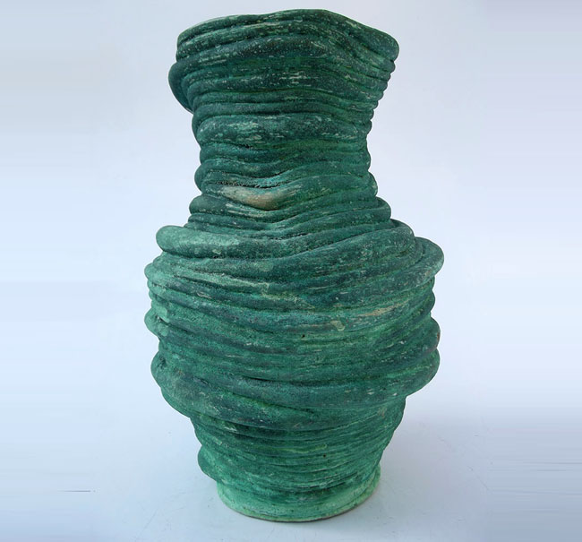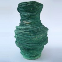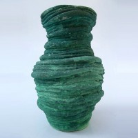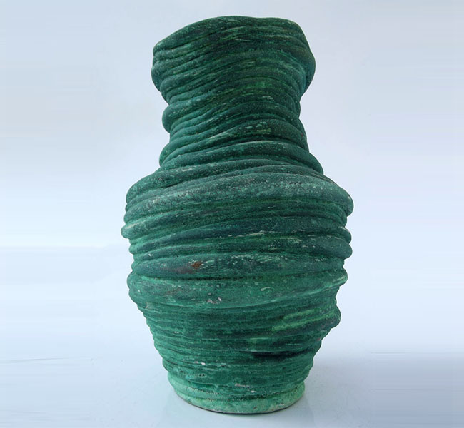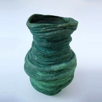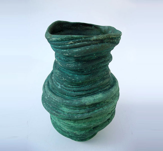 Descrição: Vaso de mármore sintético, recoberto por bronze sedimentado, com pátina quente verde.