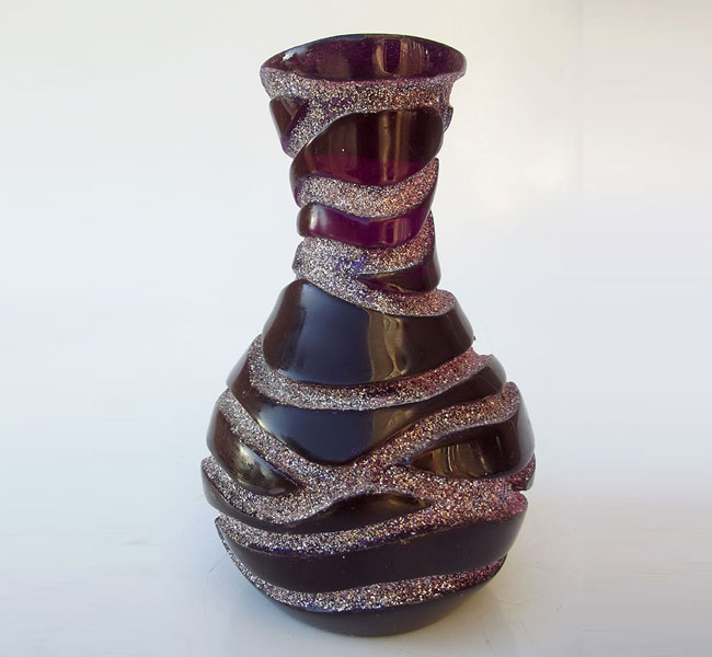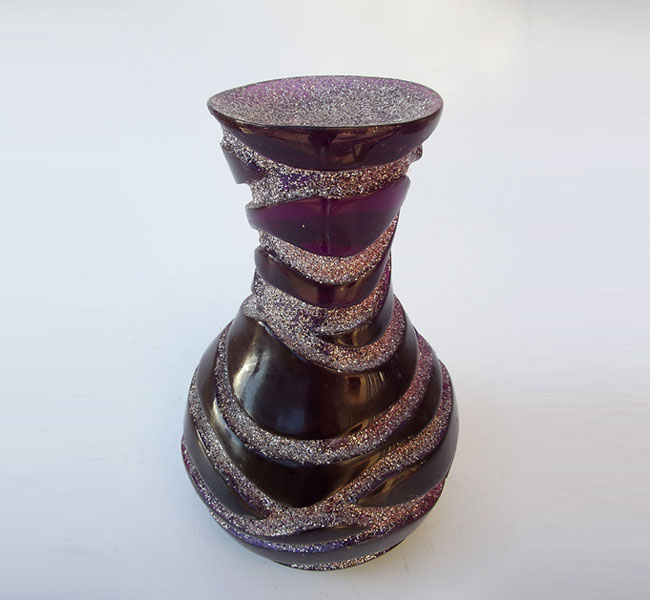 Descrição: Vaso maciço de resina de poliéster bordo vitral
