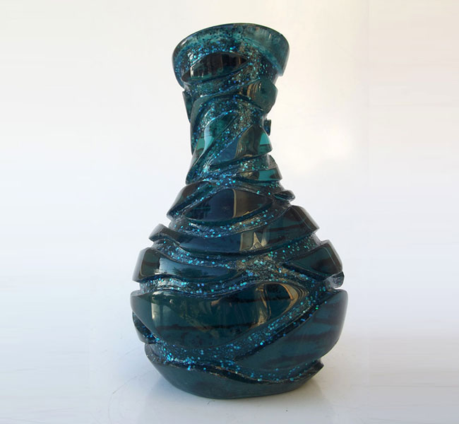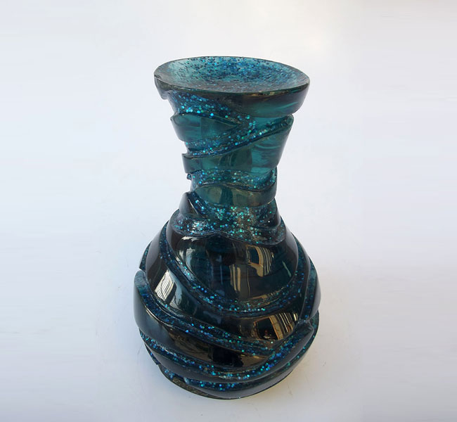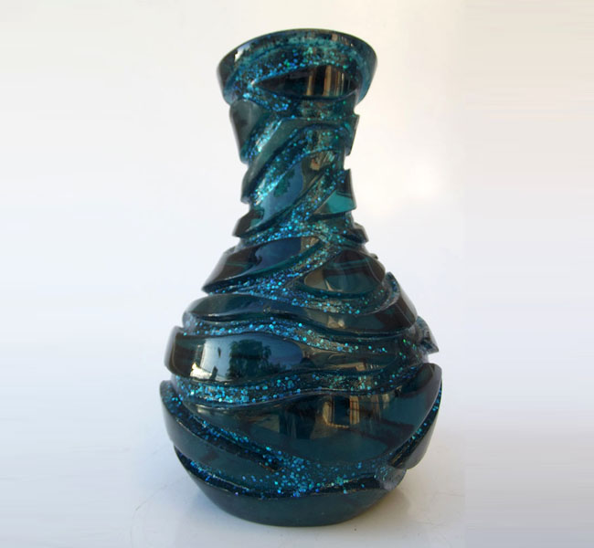Descrição: Vaso maciço de resina de poliéster verde turquesa vitral.