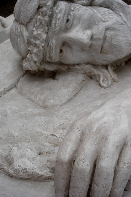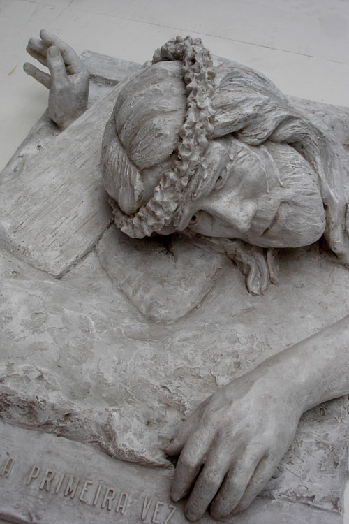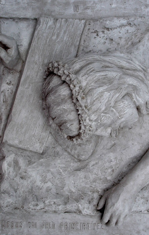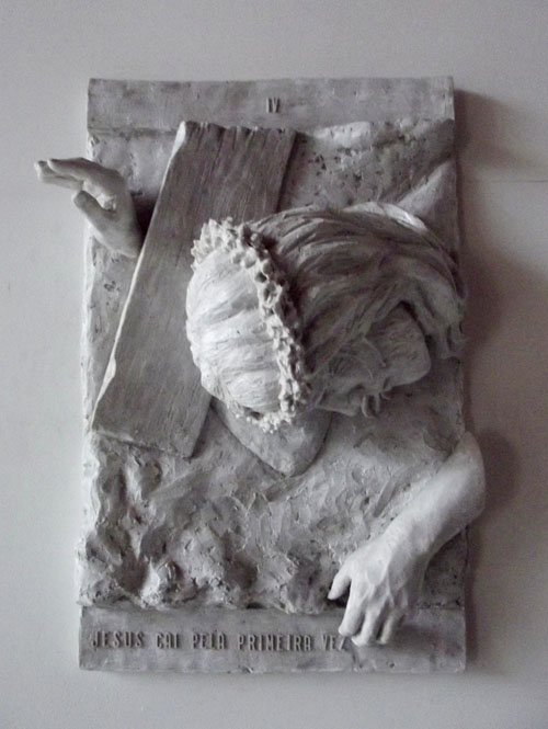 16 Estações da via sacra, laminadas em mármore sintético e fibra de vidro.
